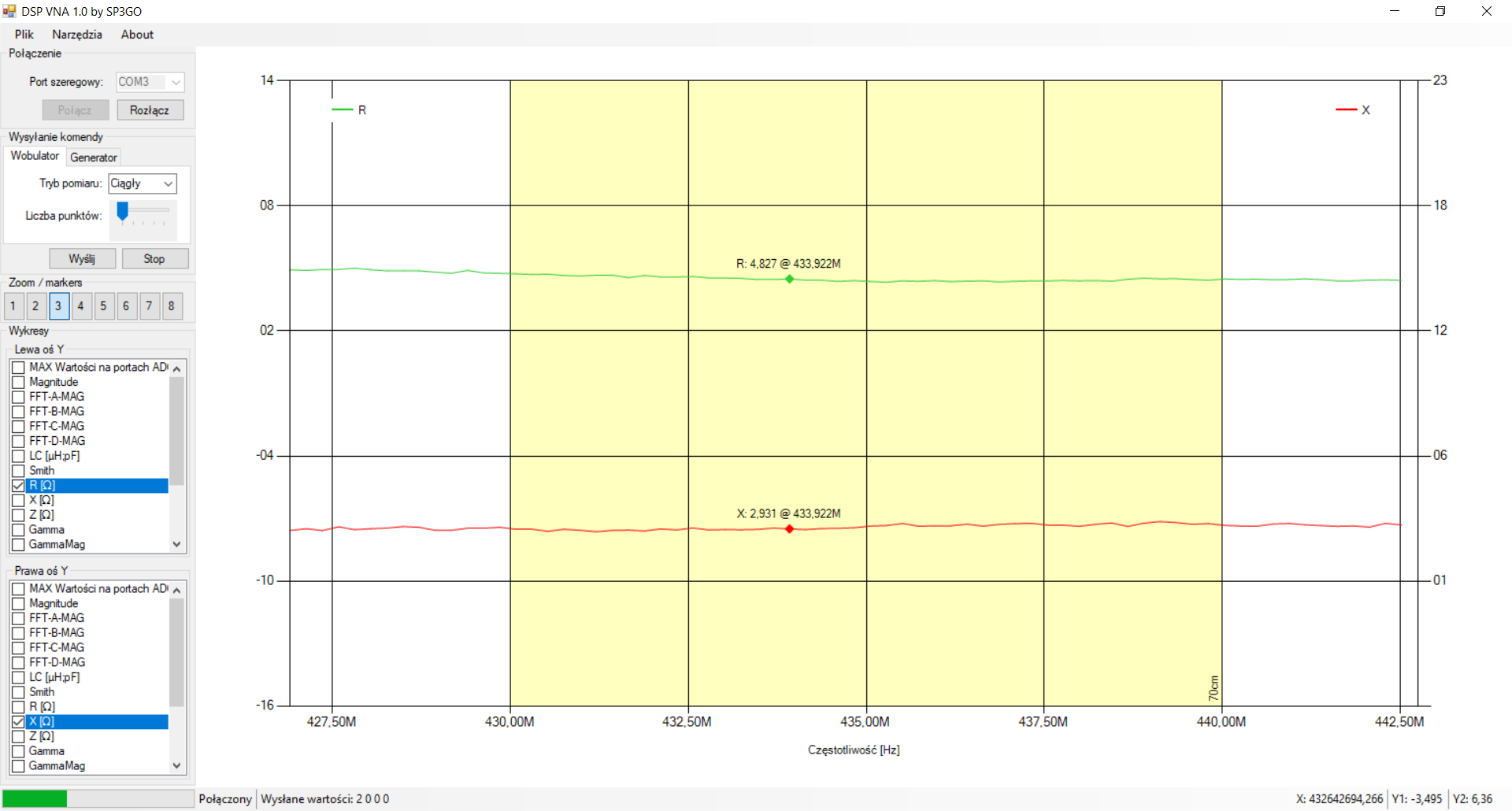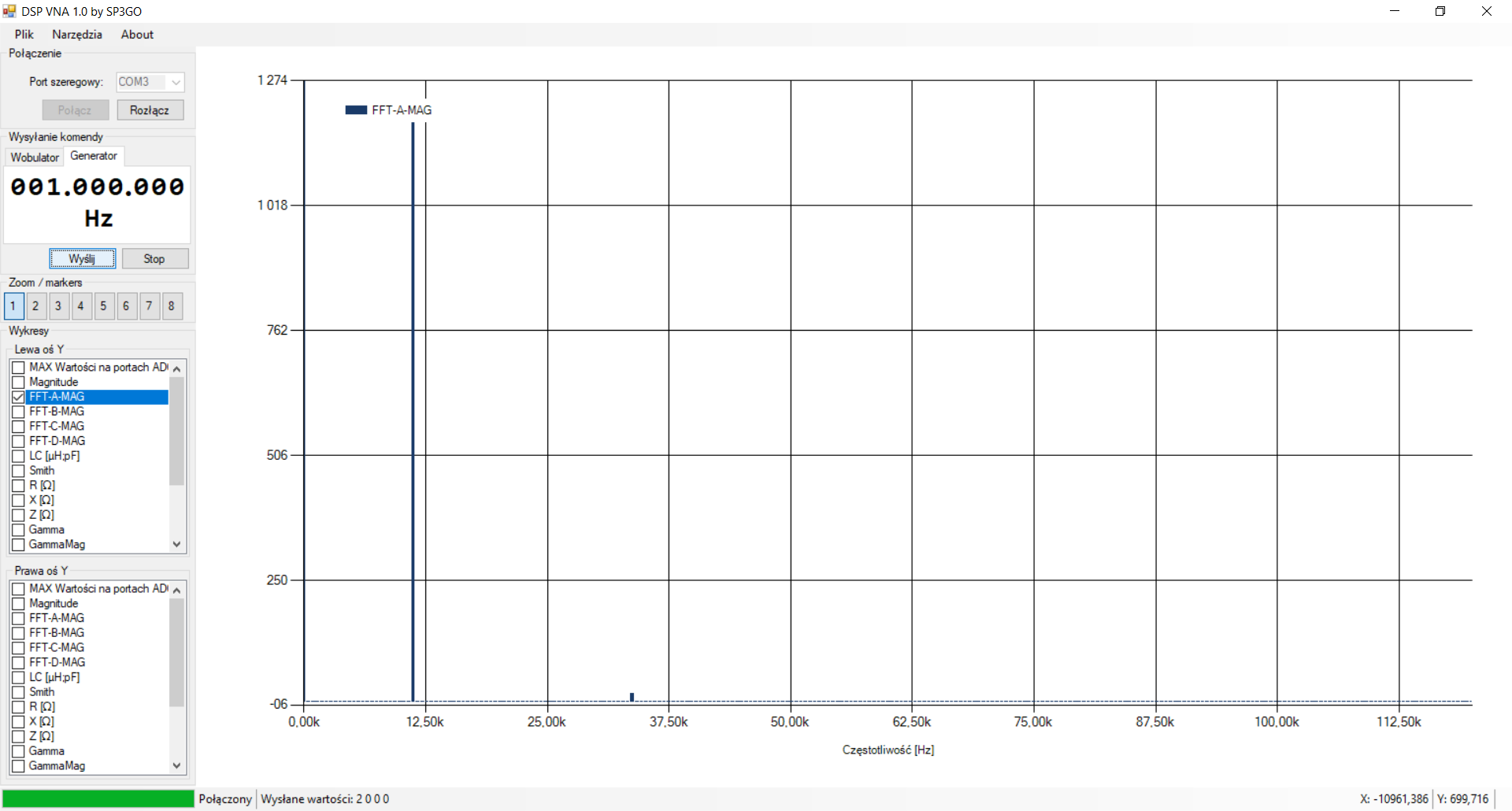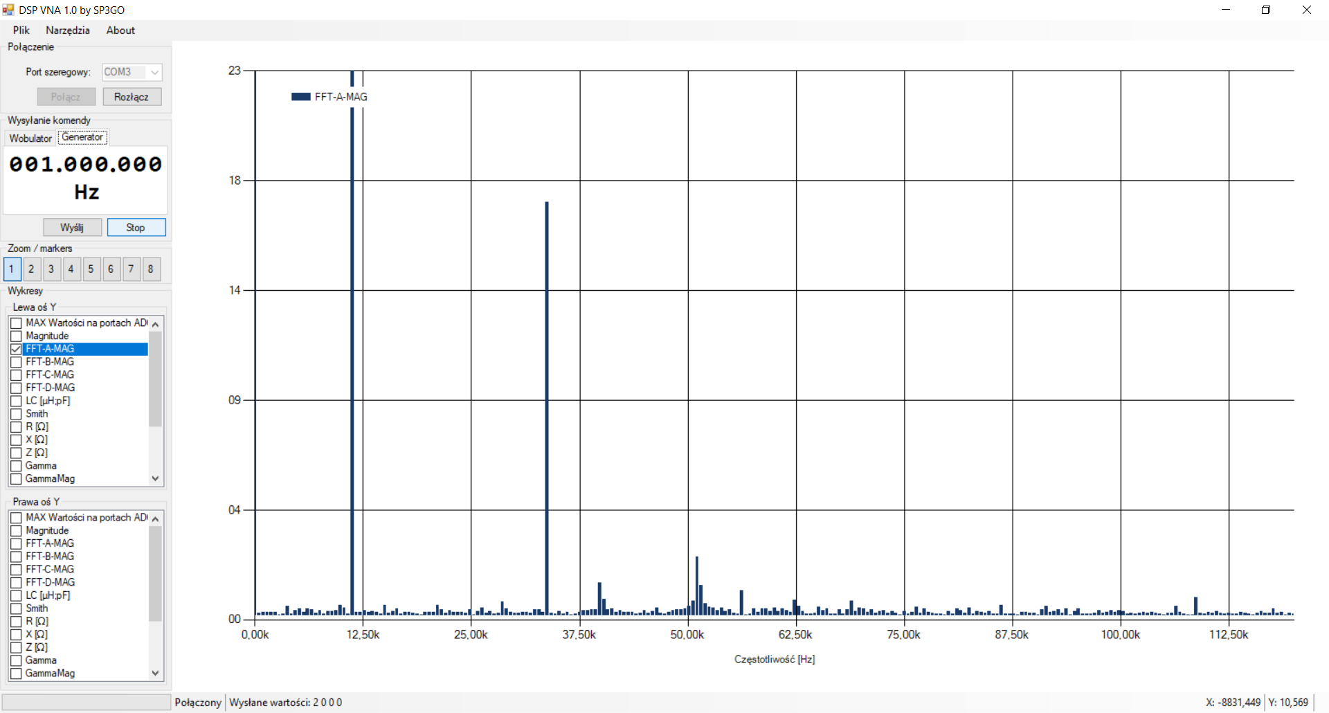 Na komputerze wykorzystuję interfejs graficzny znany już z poprzednich analizatorów, ale oczywiście zmodyfikowany kod pod względem DSP.