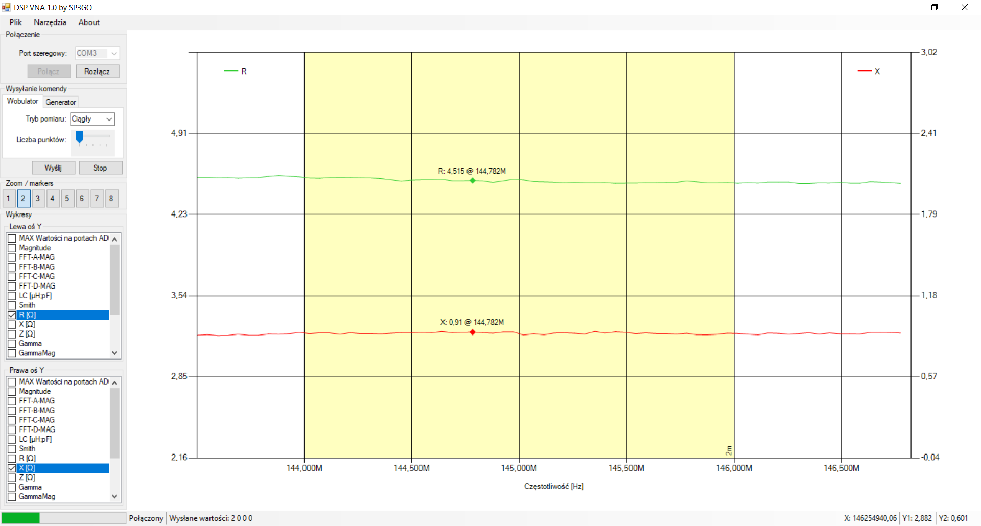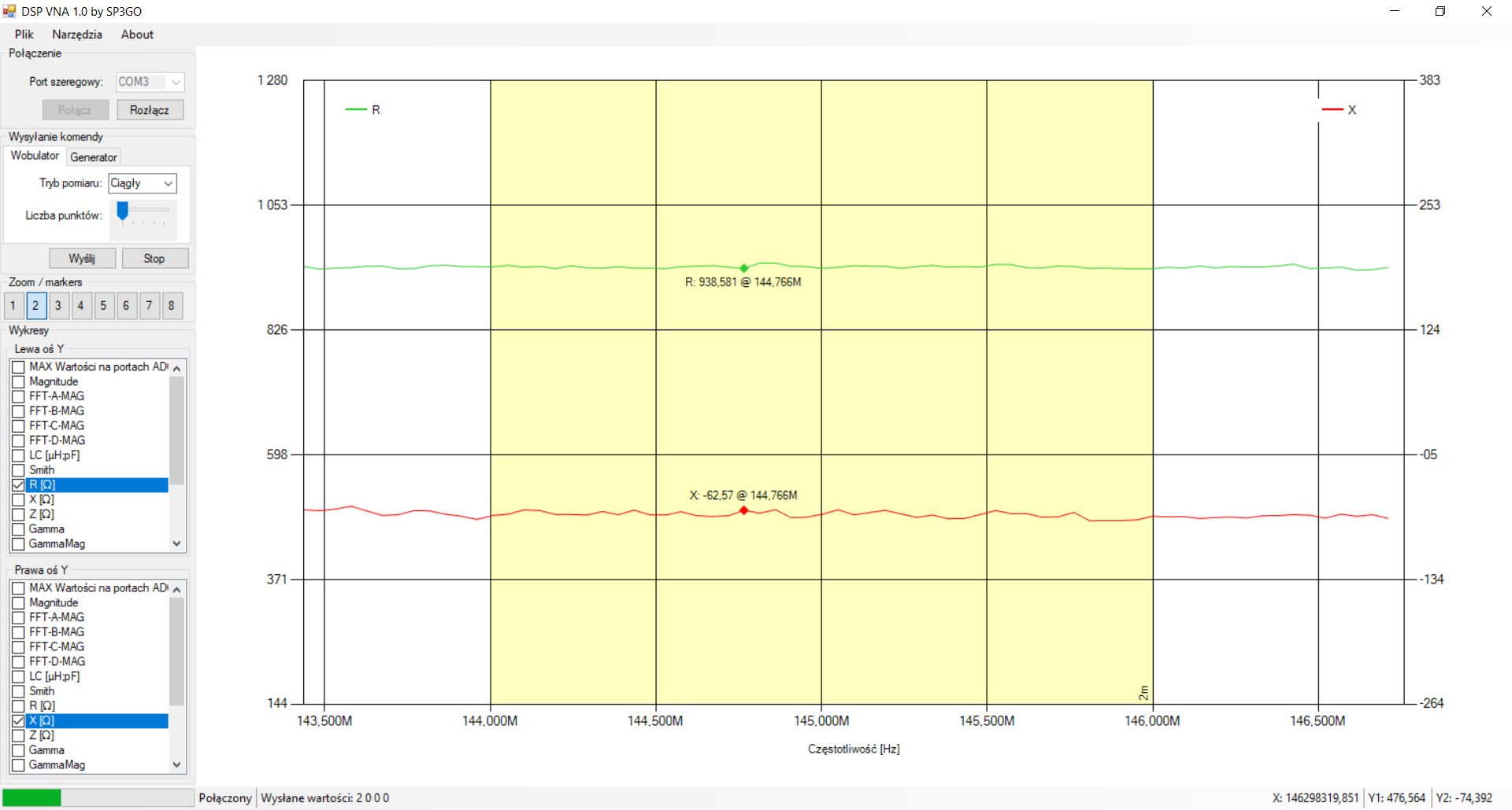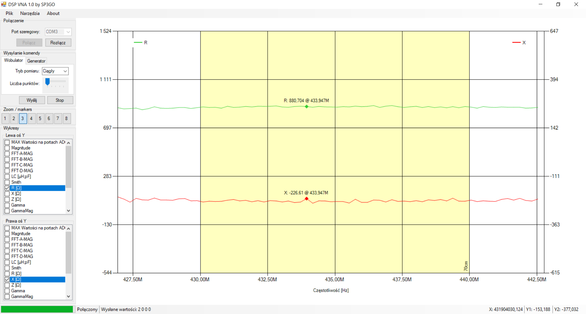 Na komputerze wykorzystuję interfejs graficzny znany już z poprzednich analizatorów, ale oczywiście zmodyfikowany kod pod względem DSP.