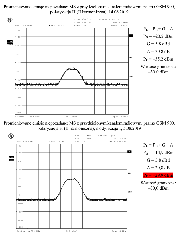 Niestety przy ponownym badaniu okazało się, ze filtr nie dość, ze nic nie poprawił to jeszcze pogorszył sytuację o kilka dB i to na tyle, że mam przekroczoną emisję też na 1.8GHz.