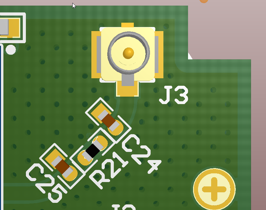 Filtr, który obejrzałem na zdjęciu na tej płytce zrobiłbym trochę inaczej. Pojemności kondensatorów filtru PI podzieliłbym na cztery i dał po dwa kondensatory po każdej stronie ścieżki. Cewkę też wykonałbym w postaci cienkiej długiej ścieżki, jeśli trzeba ukształtowanej w meandrę. Cewka skupiona może mieć własny rezonans, który spowoduje, że filtr nie będzie miał tłumienia ani dopasowania. Kondensatory też można projektować jako placki miedzi (poszerzone ścieżki) Ścieżki poza filtrem muszą mieć 50 omów, jeśli nie mają to będzie niedopasowanie. Obecnie nie siedzę w tych tematach, ale są specjalne programy, które takie paskowe filtry projektują, może ktoś podpowie czym to można zrobić.