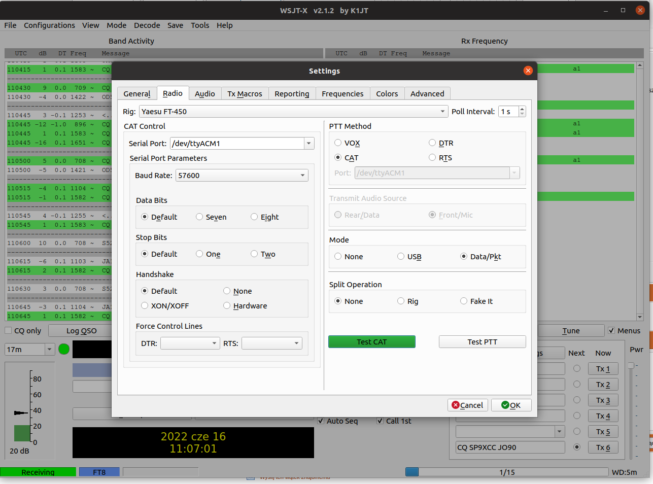 Ustawienia WSJT-X - oczywiście dotyczą mojego komputera...: