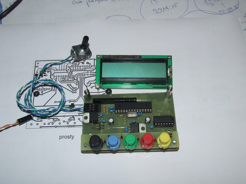 Z pięciu klawiszy mam już pomysł na 3. Skrajny lewy będzie służył do generalnych zmian ustawień, dwa z prawej strony do zmiany zakresu lub kierunku zmian wybranej opcji. Właściwa zmiana wartości wykonywana będzie za pomocą impulsatora.