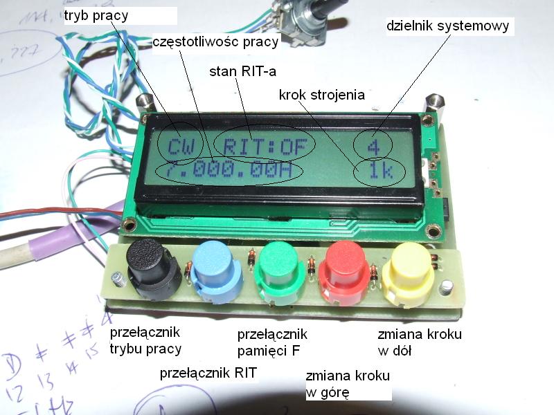 - korelację częstotliwości pracy F z podzielnikiem D (w zakresie 1-99) w taki sposób, że na ekranie pokazana jest częstotliwość F/D - to rozwiązanie będę używał w transceiverze