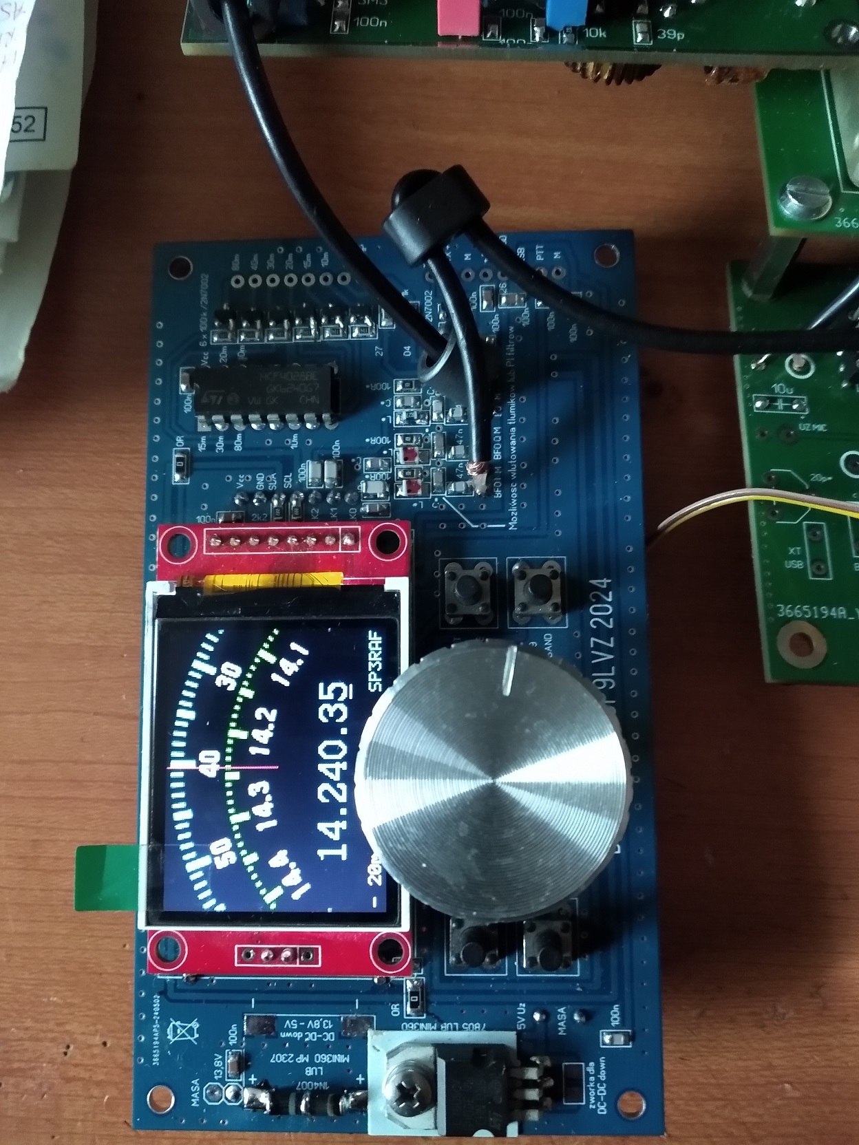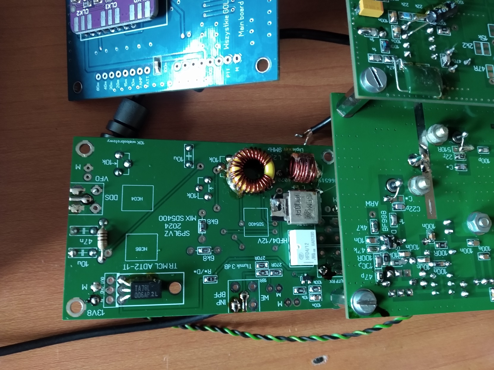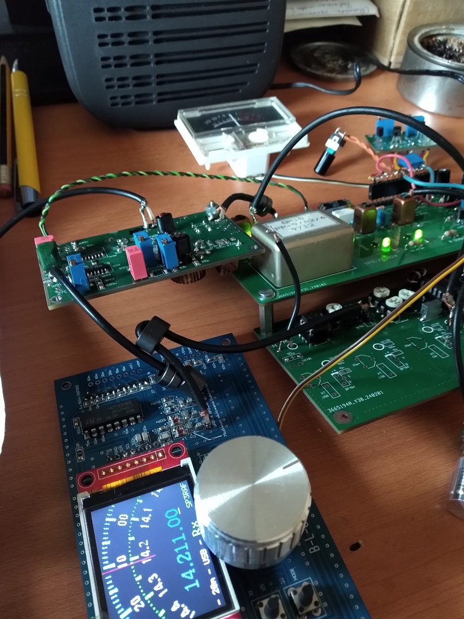 Kilka obiecanych zdjęć mojego B-L-U. Na początku uruchomiłem odbiornik "na drutach". Później, za radą Piotra SP9LVZ skręciłem ze sobą prowizorycznie płytki drukowane. Głównie chodziło o lepsze połączenie pomiędzy płytką mieszacza a p.cz. Dobre połączenie płytek oraz nałożenie na przewody sygnałowe ferrytów znacznie niweluje szkodliwe produkty przemiany. Ten prosty zabieg mocno ograniczył "ptaszki", które można usłyszeć w głośniku podczas przestrajania VFO z wyłączoną anteną. Można mieć nadzieję, że schludny i docelowy montaż płytek w ekranującej obudowie ograniczy te produkty jeszcze bardziej. Na jednym ze zdjęć widać wykres z VNA obrazujący tłumienie i dopasowanie dipleksera.