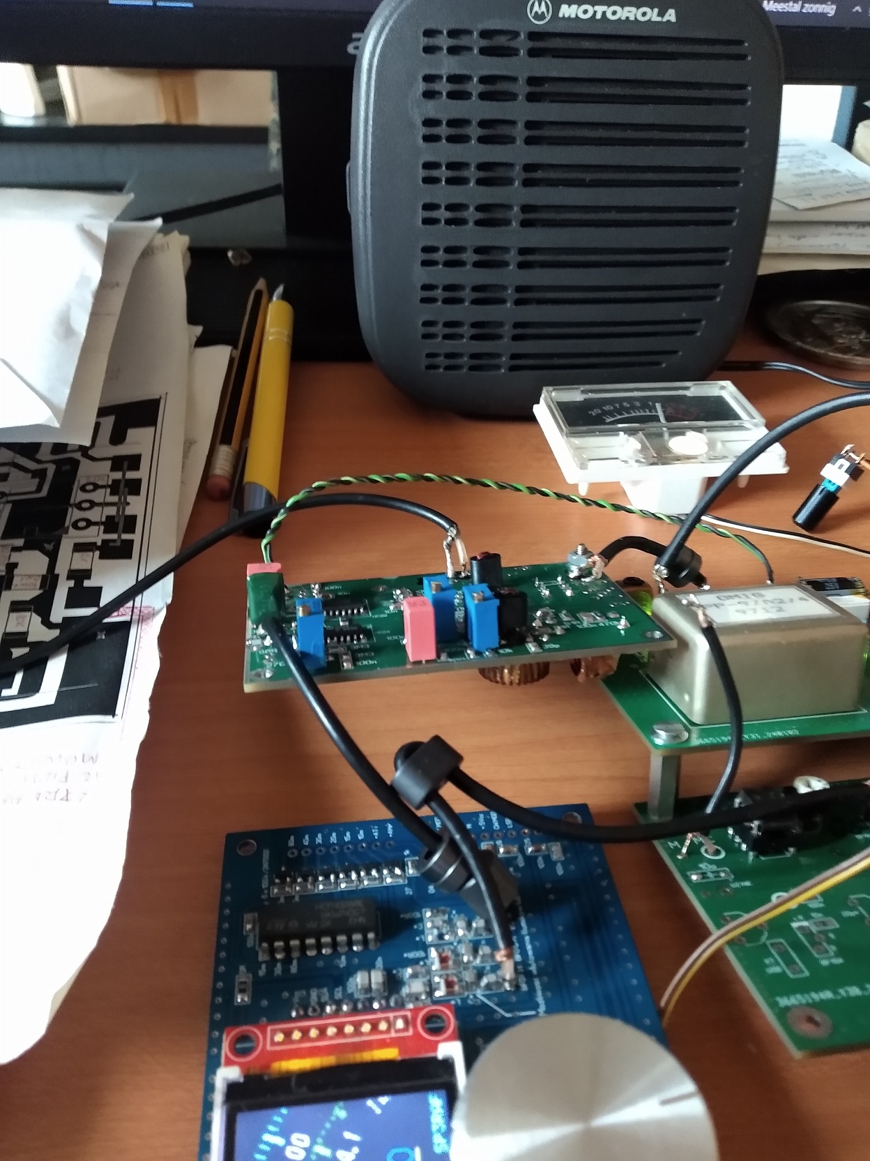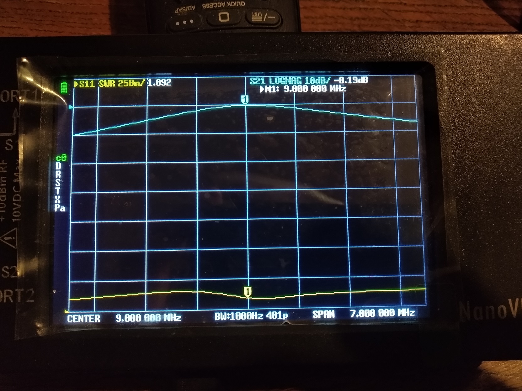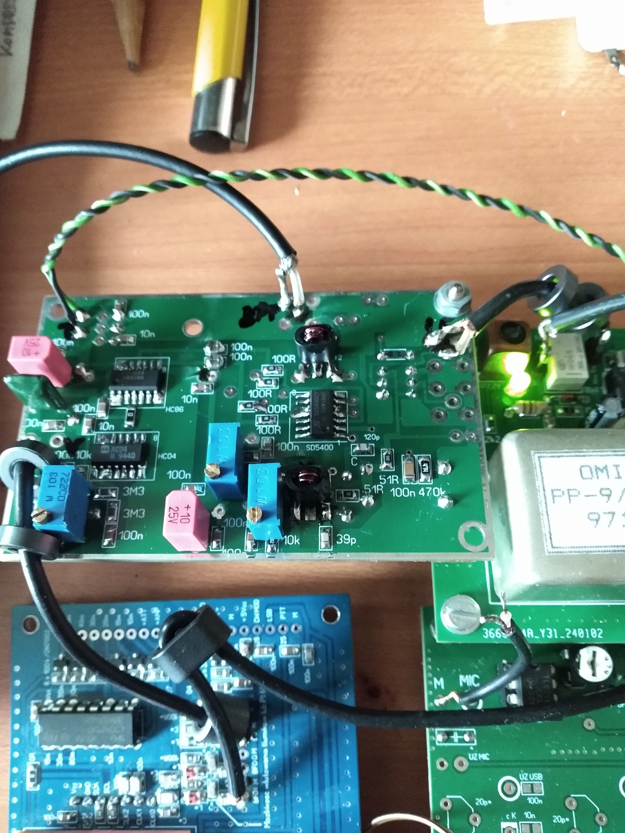 Kilka obiecanych zdjęć mojego B-L-U. Na początku uruchomiłem odbiornik "na drutach". Później, za radą Piotra SP9LVZ skręciłem ze sobą prowizorycznie płytki drukowane. Głównie chodziło o lepsze połączenie pomiędzy płytką mieszacza a p.cz. Dobre połączenie płytek oraz nałożenie na przewody sygnałowe ferrytów znacznie niweluje szkodliwe produkty przemiany. Ten prosty zabieg mocno ograniczył "ptaszki", które można usłyszeć w głośniku podczas przestrajania VFO z wyłączoną anteną. Można mieć nadzieję, że schludny i docelowy montaż płytek w ekranującej obudowie ograniczy te produkty jeszcze bardziej. Na jednym ze zdjęć widać wykres z VNA obrazujący tłumienie i dopasowanie dipleksera.