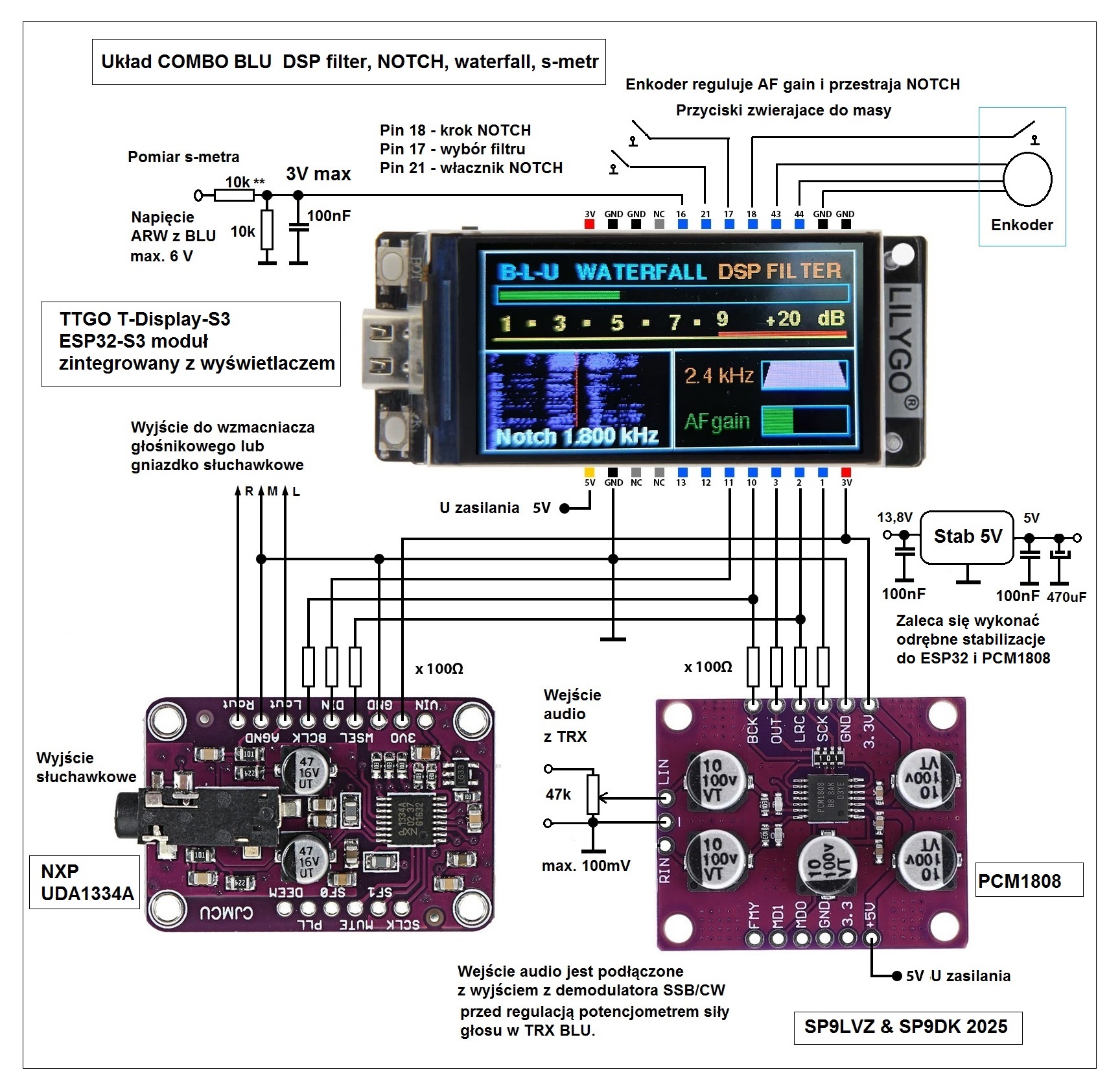 W tej wersji został zmieniony też wygląd opisu skali s-metra. Schemat podłączenia nie ulega zmianie, podłączamy wg poprzedniej wersji 2.0.