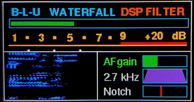 Notch filtr działa bardzo dobrze. Atutem jest dodanie waterfall sygnału odbieranego i s-metra, którego nie było na wyświetlaczu w syntezie nostalgicznej w B-L-U.