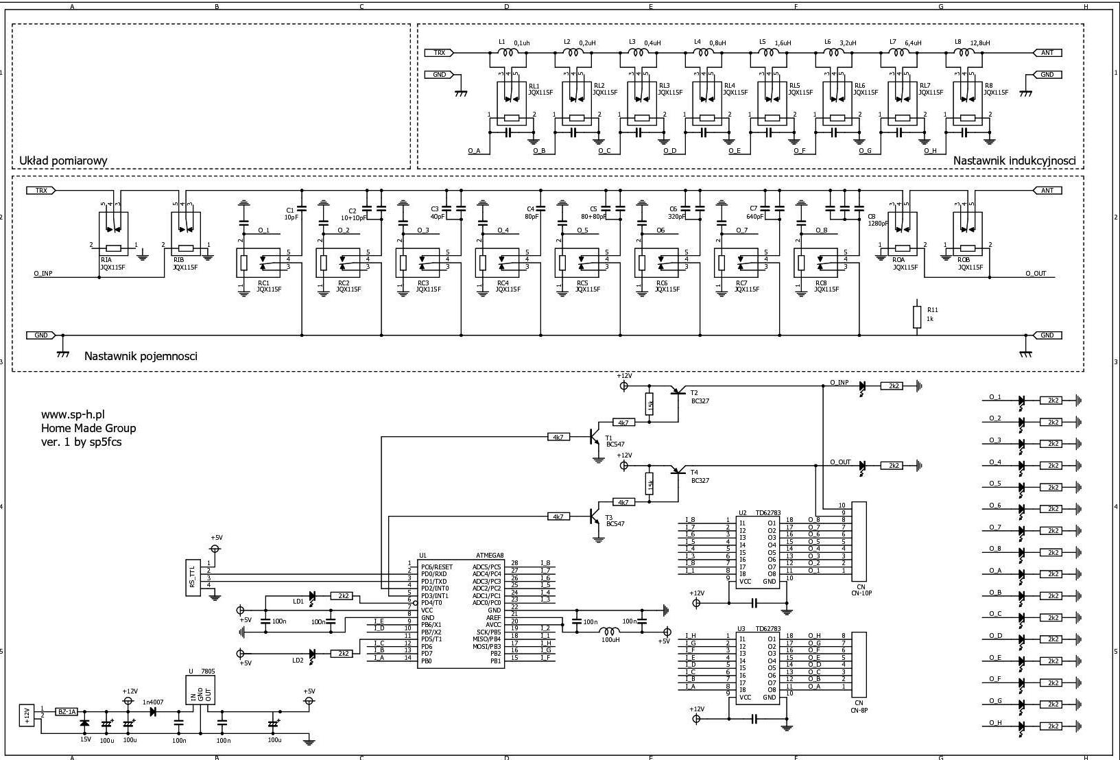 - nastawa indukcyjności 8 bitów (0.1, 0.2, 0.4, 0.8, 1.6, 3.2, 6.4, 12.8uH), stan spoczynkowy: wszystkie cewki zwarte