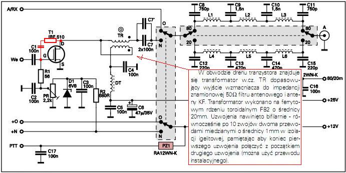 PA na 3,5 MHz, trafo wyjściowe szerokopasmowe - schemat w pliku załącznika.