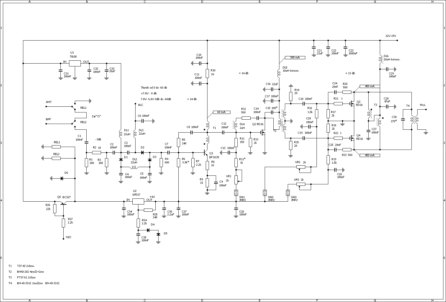 Moja skromna sugestia , jesli juz inwestowac czas i srodki na produkcje PCB ( szczerze mowiac sam bylbym zainteresowany kilkoma sztukami ) to proponuje zastanowic sie nad rozwiazaniem o co najmniej klase lepszym. Koszty wzrosna o dwa kondensatroy i jeden rdzen na kazde pasmo a osiagniete rezultaty ;-).