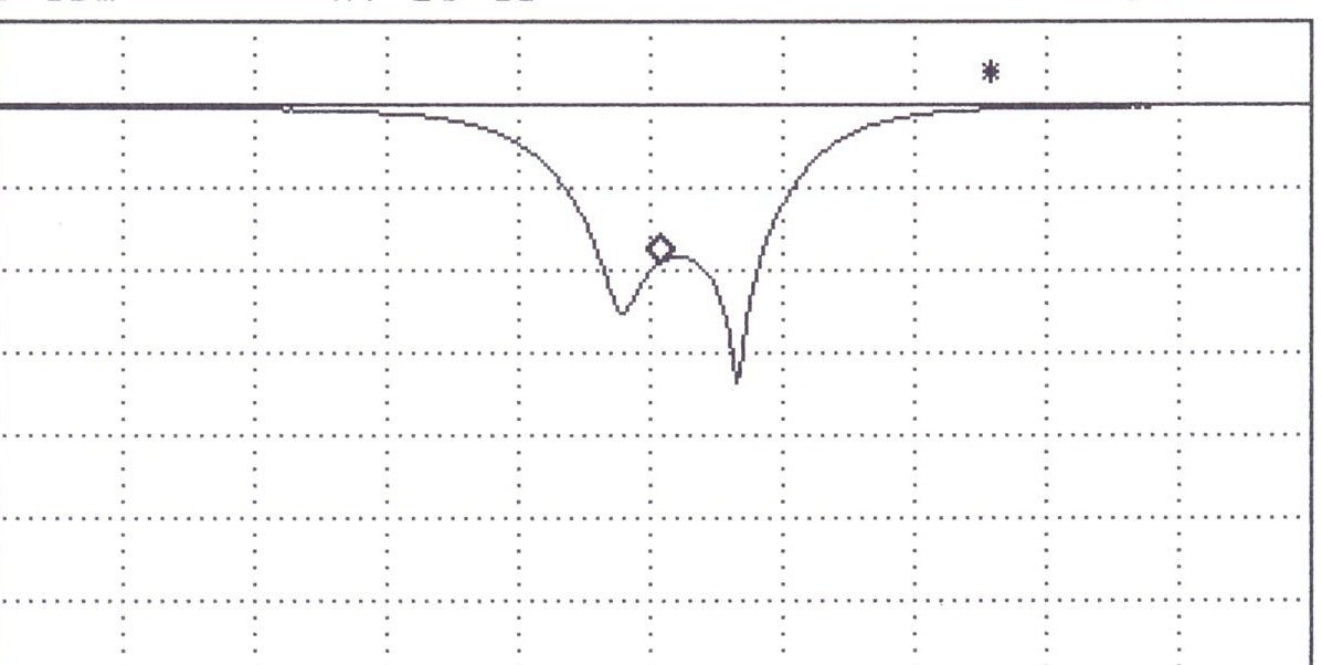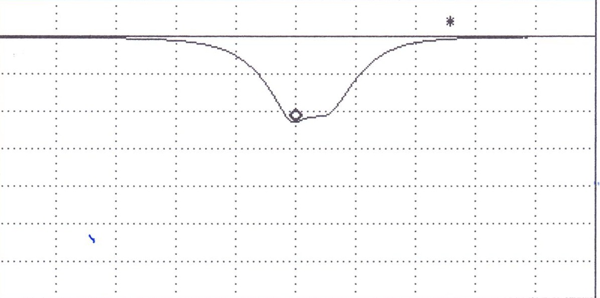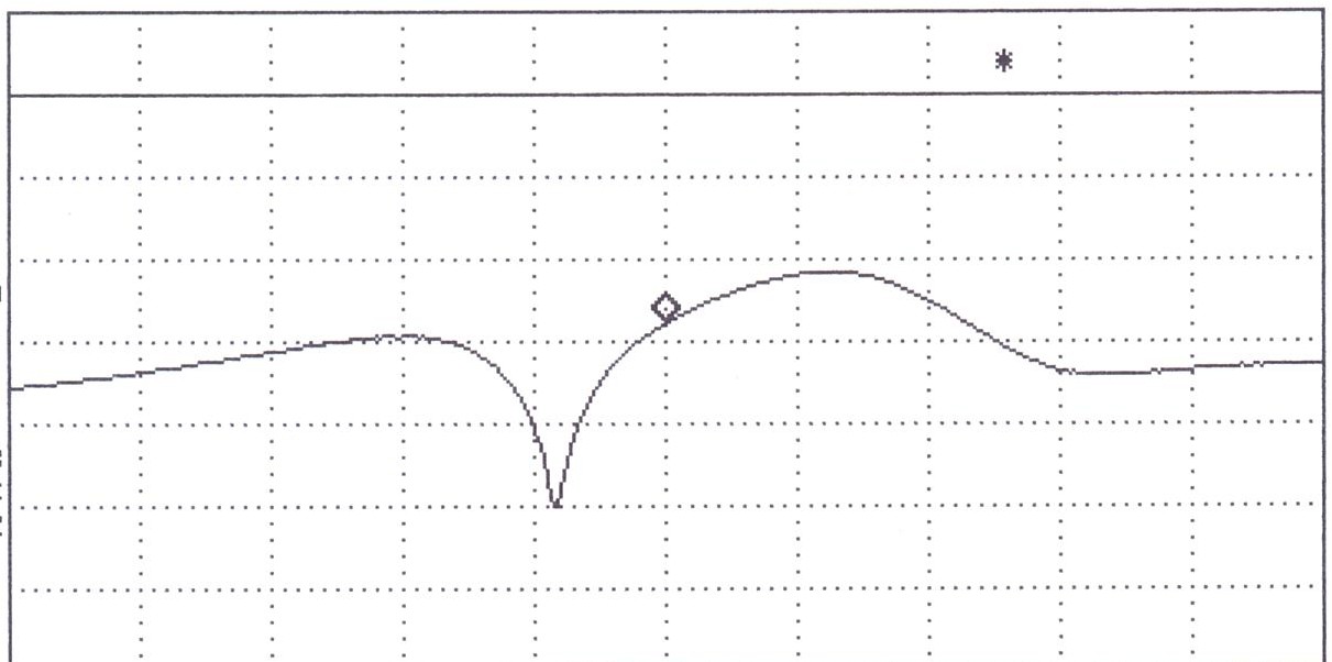 Pomiar ch-ki przenoszenia zawsze traktowałem jako pomiar wstępny. Właściwy pomiar i strojenie wykonuje się za pomocą mostka odbociowego. Dowolny analizator podłączamy do mostka, a ten dopiero do wejścia filtru. Filtr obciążamy prawidłowym i dokładnym rezystorem 50 omów. Obrazek, który uzyskamy na ekranie naszego wobulatora lub analizatora może wyglądać tak: