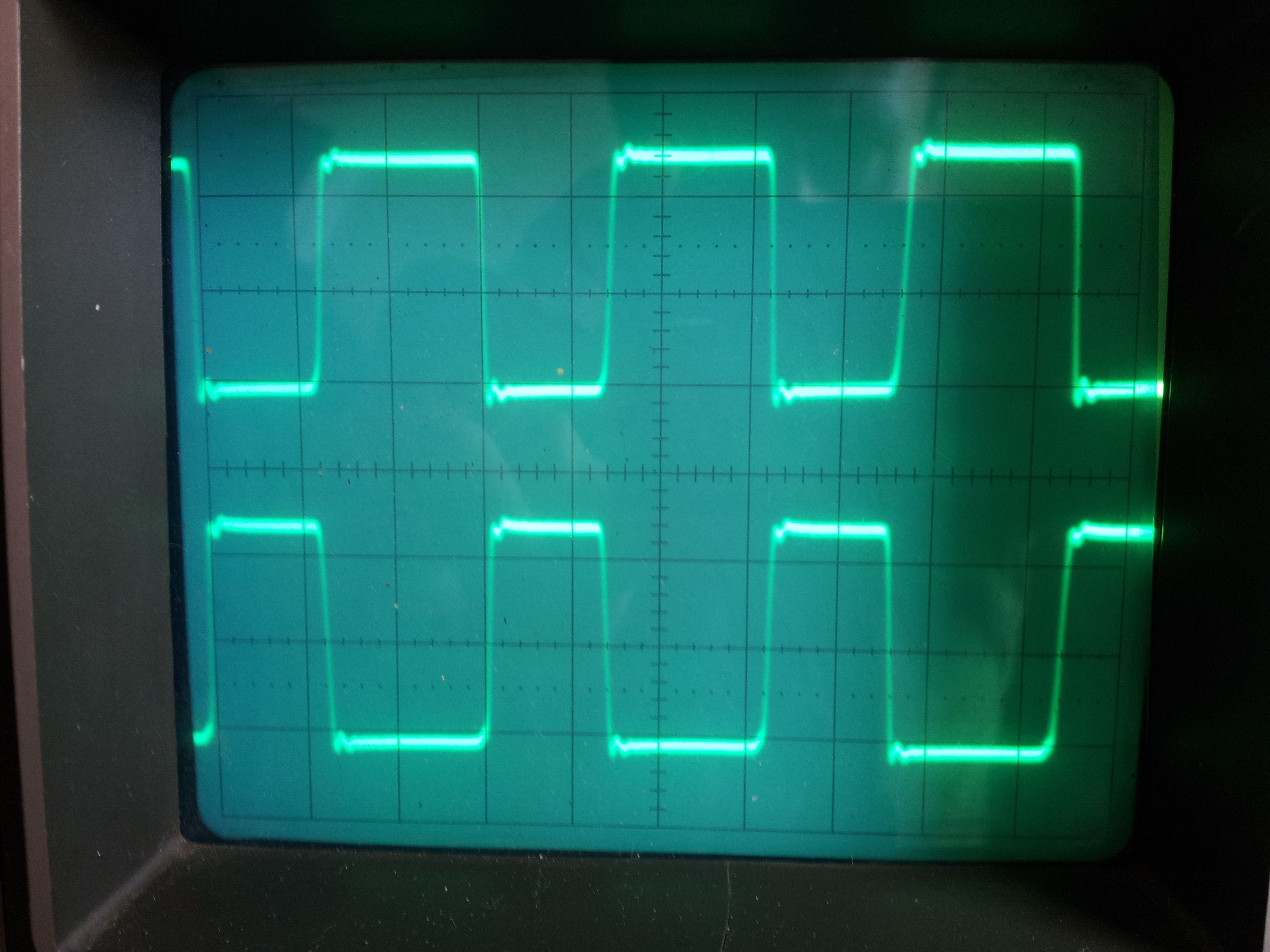 W poście #4 Roman SP5AQT zamieścił przebiegi na wyjściach squarera. Są na tyle różne, że nie wiem które są prawidłowe. Zamieszczam swoje i proszę o opinię.