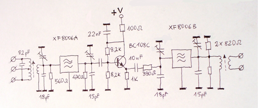 Filtr XF8006 jak sama nazwa wskazuje ma częstotliwość środkową 8,006 MHz, a na jego zboczach 8,004 i 8,008 MHz ustawia się piloty dla USB i LSB.