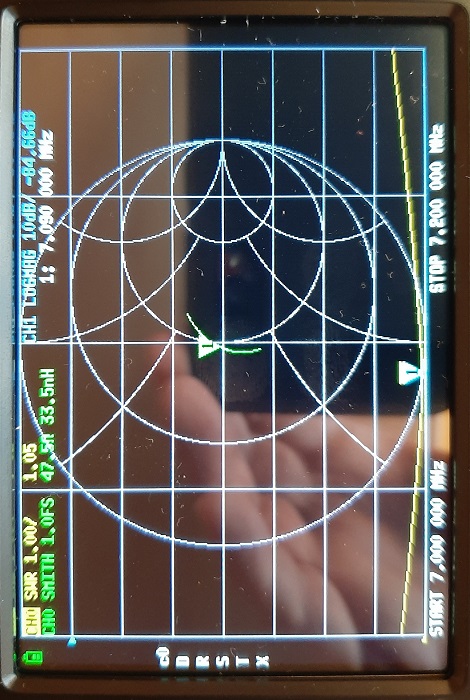 W załączeniu pomiar analizatorem mojej anteny na 7MHz zrobionej wg. powyższej zasady. Antena wyliczana była na 7,1 Mhz, po zawieszeniu nie wymagała żadnej korekty długości.