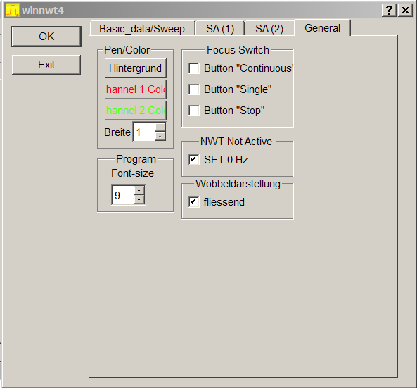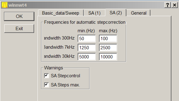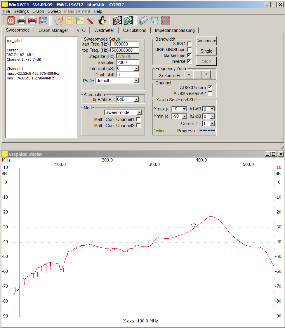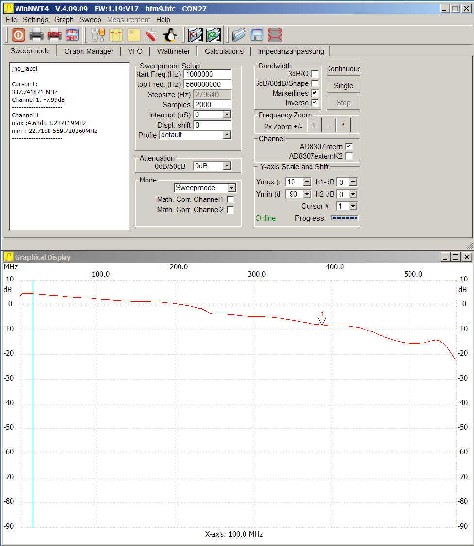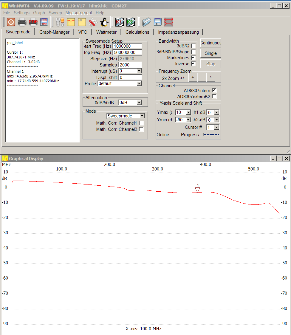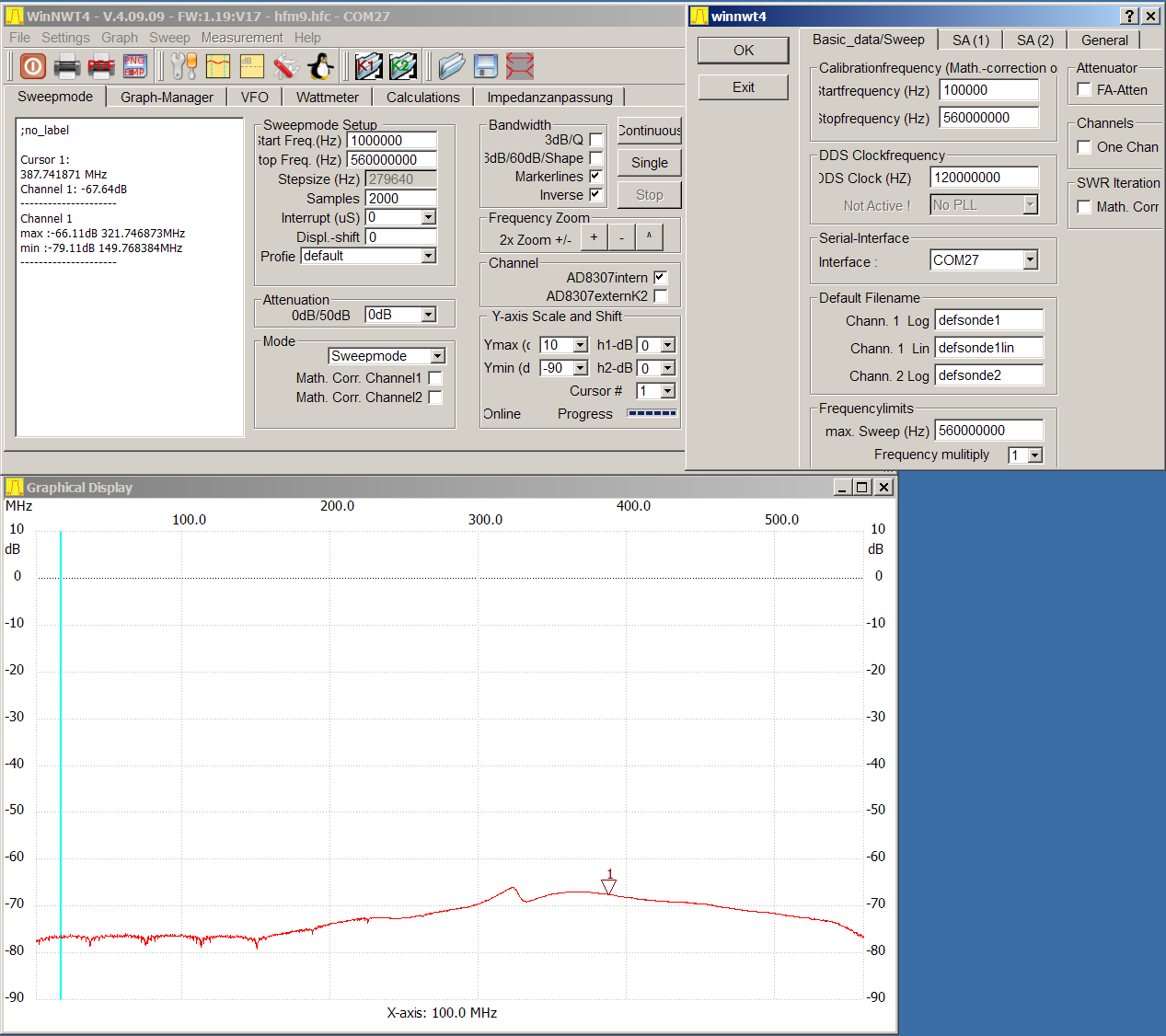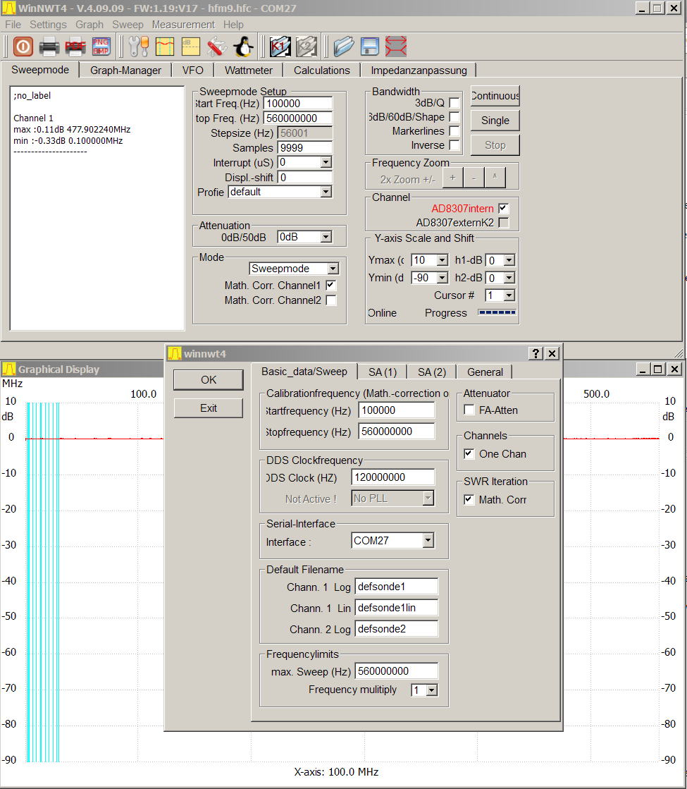 d. Basic Data/Sweep + ustawienia w zakladce Sweepmode wraz z jednorazowym przemiataniem przy "otwartym" WE i WY NWT, freq=1-560MHz