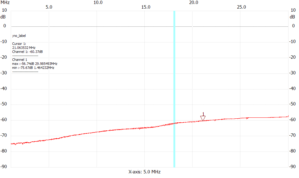 Rosnaca krzywa wraz z czestotliwoscia to zapewne efekt wystajacych kabli pomiarowych. Sa tak krotkie jak to bylo mozliwe.