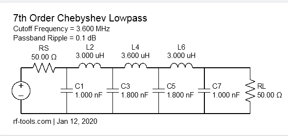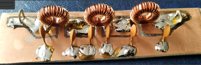 u mnie kondensatory przy WE i WY to 1nF a te w srodku to 2x1nF a nie 1.8nF jak sugeruje schemat. Cewki zmierzylem mostkiem LCR i tak przesuwalem zwoje by bylo boczne mialy 3uH a ta srodkowa 3.5 (czy 3.6uH - nie pamietam).
