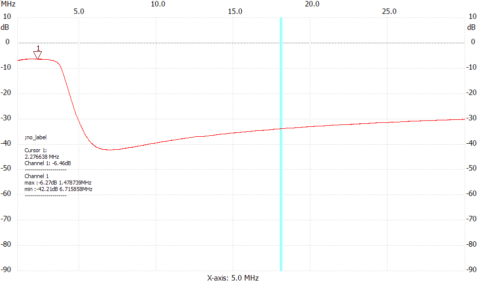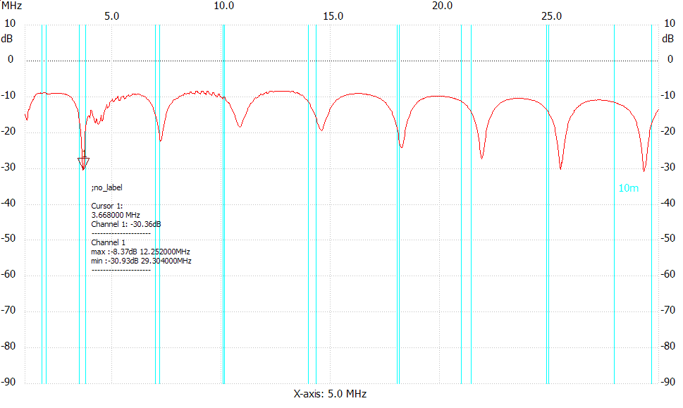 Ponizej tylko wrzuce pomiar LPF ktory zrobilem na 80m (do 3.6MHz), czesc CW (ktory chcialbym zastosowac do nadajnika QRP CW na 3.5MHz). Moze on potwierdzi czy NWT jest sprawne czy tez potrzeba je skalibrowac.