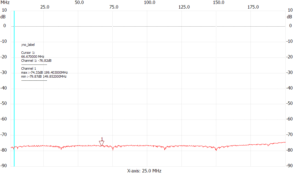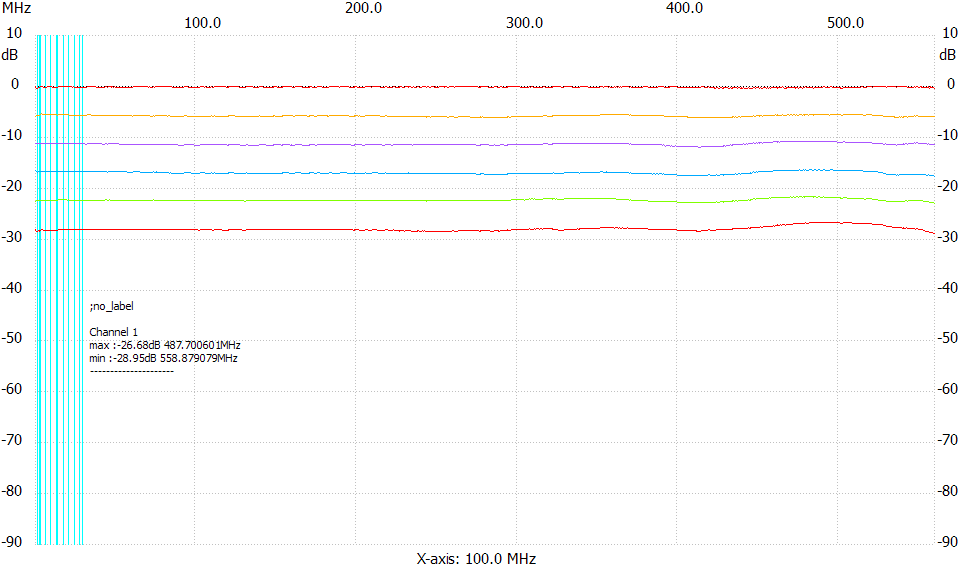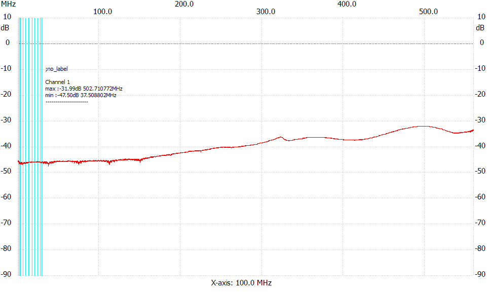 d. IN i OUT polaczone kablem 50om (ok. 25cm) - zwarte. Te same ustawienia co wyzej [1-560MHz].